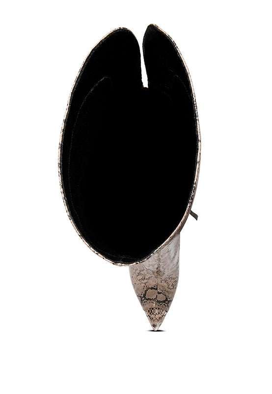 Fierce Snake Print Stiletto Knee Boots