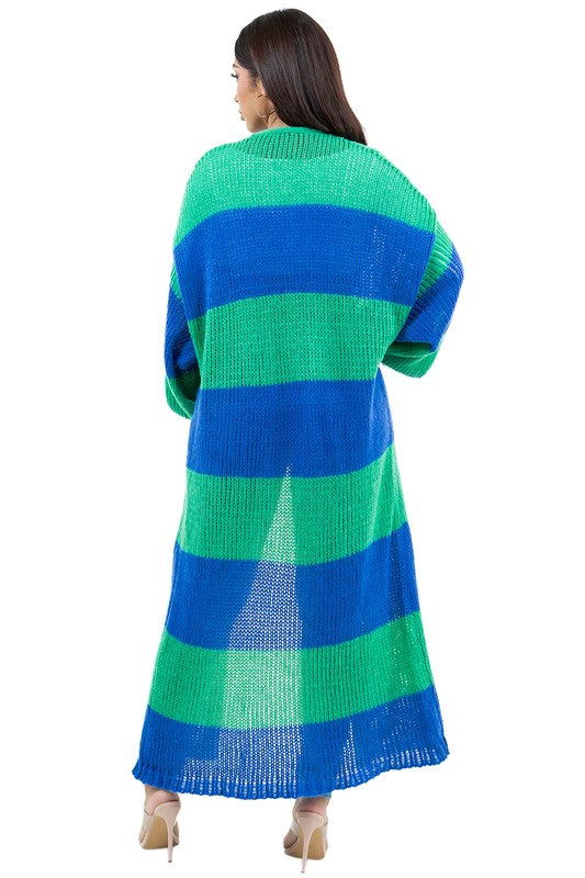 This longline cardigan features a soft knit texture, long sleeves, and a relaxed, oversized fit for ultimate comfort and style.